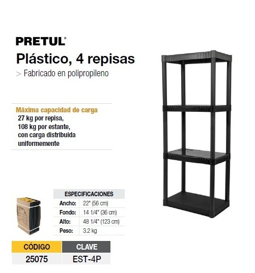 ESTANTE PLASTICO 4 REPISAS PRETUL 25075