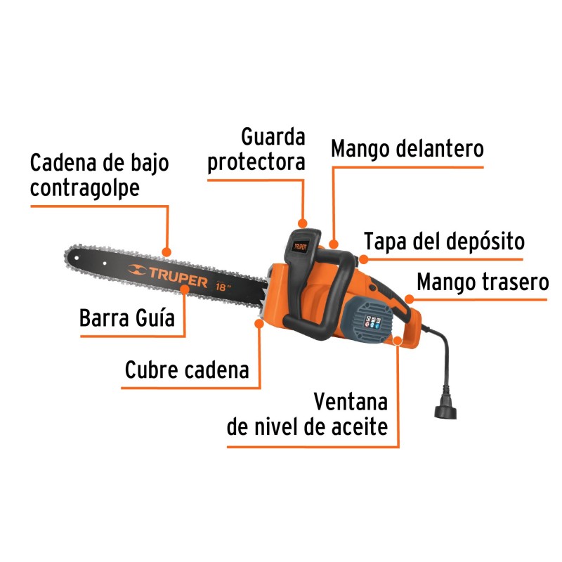 Capacidad de corte: Barra de 18" (45 cm) para troncos medianos.