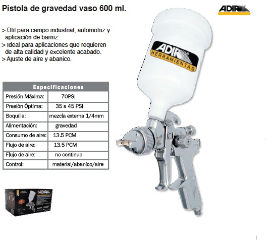 PISTOLA DE GRAVEDAD 600 ML ADIR MOD 663